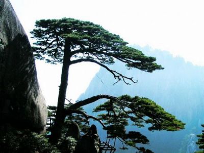 迎客松生于玉屏楼左侧,倚狮石破石而出,是黄山的标志性景观。树高10米左右,胸径0.64米,树龄至少已有800年,一侧枝桠伸出,如人伸出臂膀欢迎远道而来的客人,雍容大度,姿态优美。是黄山的标志性景观。 迎客松松名始见于民国《黄山指南》。 在北京人民大会堂安徽厅里,有黄山迎客松的巨型铁画,党和国家领导人多次在铁画前与外国客人合影留念;1994年大会堂东大厅也悬挂了国画《迎客松》,作者是黄山籍画家刘晖。它不仅是黄山的象征,也成了中国人民热情好客的象征。 客松近旁经回香阁,下坡路右,即是美女泉。因泉眼西南有仙姑尖,传为美女所化,故名之。