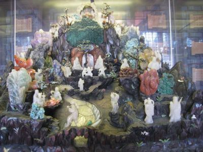故宫珍宝馆位于故宫博物院东部,设在故宫东北角的皇极殿西庑、养心殿、乐寿堂和颐和轩里。珍宝馆是一座宝库,有各色宝石,闪闪发光的金银器皿,珍珠翡翠,还有金丝凤冠、象牙玉雕,各类珍宝举世无双;最为突出的是有一座镐多塔,重达5000公斤的大型玉雕。