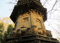 金仙公主塔位于房山云居寺石经山雷音洞上面,建于唐开元十八年(740)。 金仙公主塔坐北朝南,通体高3.5米,全部采用汉白玉石精制而成。基座由块石砌垒。中间用4块厚板石组成方形佛龛,正面设券门。门两侧各有浮雕金刚力士一尊。自门向里,对面石壁上...[详情]