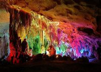 黄牛岩在漓江西岸,磨盘山南,与碧崖隔江相峙,距桂林约30千米。峡上多奇石,如碧莲、狮虎、蝙蝠、黄牛群,因得名。漓江清流至此,急转90度大弯,水流分为二,拍击3个洲渚,滚滚南去,民谣谓“九牛对三洲,河水两连流;五马拦江过,双狮滚绣球”。