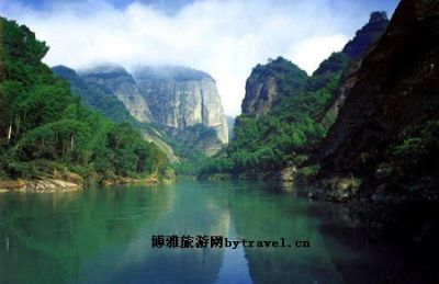 漂流风光旖旎的资江,犹如步入一条长长的山水画廊。两岸奇峰突兀,怪石嶙峋,云烟缥缈,竹木葱笼,山花烂漫,水鸟低飞,莺啼婉转。江面鱼鹰竹筏穿梭于清澈江面;江畔竹篱茅舍,掩映于翠绿丛中,屋舍俨然,鸡犬相闻。倒影映水底,彩石铺河床。江流水急,清澈见底,鱼游水中,历历可见,白浪扑面,清风徐来。乘舟或漂流而下,山随水转,舞伴舟行,三弯九折,舟移景换。远望,"山-复疑无路";近前,"柳暗花明又一村",浪拍衣衫,亦惊亦喜,船在江上行,人在画中游,令人心旷神怡,惬意莫名。沿岸景物琳琅满目,奇观迭出,"风帆石"、"玉屏山"、"三娘石"、"神象饮水"、"万马饮江"、"美猴王醉卧沉香寨"、"大将军骑马镇天门"……千姿百态,形神兼备,惟妙惟肖,妙趣横生,令游人击掌叫绝,叹为观止,顿生"资江归来不游江"之感。