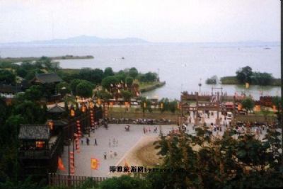 水浒城南面与三国城相邻,西濒太湖,占地580庙,可供拍摄的水上面积1500亩。水浒城主体景观可分为州县区、京城区、梁山区三大部分。