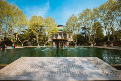 东南大学欧洲文艺复兴式建筑风格的大礼堂和绿色的喷泉--涌泉池是电影《致青春》的取景地,影片中新生开学的剧情就是在这里拍的。大礼堂标志性的穹顶几乎是每个南京人都能轻易辨识出来的。行走在东南大学的林荫大道下,你还可以看看图书馆、结构实验室、工艺实习场、梅庵等老建筑。校园西北角、梅庵南侧还能看到一棵相传有1500多年历史,种于六朝时期的“六朝松”。