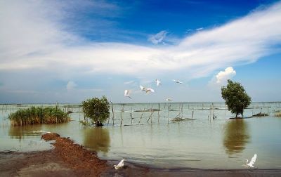 王沙岛风景区位于泗洪县临淮东北约2公里的洪泽湖中,是洪泽湖上一个美丽神秘的岛屿,登岛四眺,渔村烟柳,堤岸泊舟,一幅悠闲景象。王沙岛地质结构奇特,在坚硬的粘土层上,覆盖着一层厚厚的黑砂,洁白的贝壳间杂其中,形成天然的黑色沙滩,与湖面构成了一幅美丽的画面。水陆相间处,地势平坦,蓄水期深没过腰,自然形成一个露-场,岛上气候宜人,空气纯净清新。全岛遍生芦苇、荷花、莲子、芡实等三十多种水生植物,形成一个天然绿色的生态氧吧。置身其中,远离都市的喧嚣,体味湖光水色的神秘,“飘飘乎如遗世独立,羽化而登仙!”