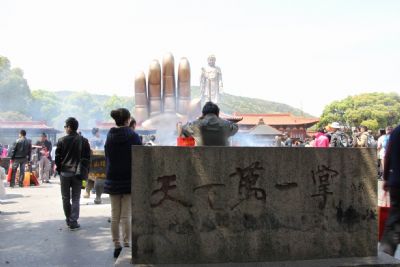 天下第一掌为灵山大佛右手的复制件,它与灵山大佛右手形状、大小完全一样,以1:1的比例复制而成。手掌高达11.7米,相当于三层楼的高度,宽5.5 米,手指直径就达1米,总重量达13吨,由此可见大佛的雄伟高大。佛掌的印相为“施无畏印”,寓意驱除众生痛苦,令众生无畏无惧。 “摸摸佛手,增福添寿”,游客可以带着美好的心愿去摸摸佛手,燃一炷清香,让大佛为你驱除烦恼,保佑你一生平安。