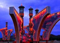 玉佛苑位于圣莲湖南岸有一自然天成的圆形山坳中,占地面积3万平方米,气势恢弘、富丽堂皇。玉佛苑为三层亭塔式结构,一层为玉佛殿、二层为万佛阁、顶层为舍利塔,作供奉佛门舍利之用。塔盖呈圆形,下垂18只法铃,塔身呈宝葫状,腰挎三层108朵金色小莲花,塔座由白色栏杆围绕,上部叠开18朵大莲花,整个塔体犹如莲花托起,微风吹过,梵音四起。玉佛殿建筑极富匠心,整体建筑造型浑然一体,巧夺天工,属世界独创。接下来我们上去参观一下玉佛苑,现在大家可以仔细数一下脚下的台阶,一共有52阶,这也表示从人-到佛一共需要52个阶段。