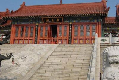 步入玉佛寺下的荷花池附近,就听到阵阵的铜铃之声,清脆悦耳。只见悬挂在寺前香塔炉层檐下的铜铃,随着风的吹拂,欢愉的鸣奏着。左侧念佛堂隔着玻璃隔着窗帘,传出了悠扬的诵经声,右侧是五观堂,其中成列了许多经书和道具,中间的整个香塔共有四层分别写着"不二法门","和平时间","华夏常辉"等。大雄宝殿内的玉佛由雕刻师经过一年零三个月雕刻而成,玉佛原料为岫岩的河磨玉,高2.8米,重5.9吨,是目前为止世界上最大的河磨玉佛。