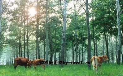 到森林公园来观光游览,你会感受到农家生活的温馨,沉浸在田园生活的乐趣中。当你来到这里,春天是百花吐艳,鸟语花香;炎热的夏天,这里的树木郁郁葱葱,遮天蔽日,是清凉爽怡的;秋天落叶纷飞,流金飘香,是另一番景象;冬天,大雪堆积,却让人体味到-雪原的意境。你会发现这里的天空竟是这么辽阔而又如此湛蓝,天高云淡,是那么美丽,连树林中的牛和羊群都是那么悠闲自在,一切烦恼将会远抛,心灵会变得澄明。