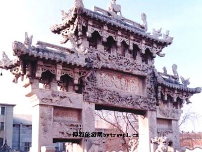 坊上题字均为翰林单兰亭所书,字体端庄幽雅。石坊雕刻内容丰富,人物、动物、植物、器物、山河等,无所不有。手法综合运用立雕、透雕、浮雕、高肉浮雕和线刻技巧,精妙绝伦。