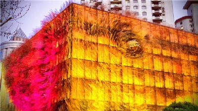 博物馆总投资超过2000万人民币,是中国及亚洲第一个全面展示琉璃艺术的行业博物馆。博物馆矗立在上海的时尚核心地带新天地附近。单外墙就镶嵌着4800多片宛如石窟岩石般质感的透明琉璃砖。一朵宽10米、高5米、重达1吨的巨型金色牡丹花高挂在琉璃墙上,好似从琉璃中绽放出来,显得格外醒目。不仅是外墙,博物馆的每一个细节都投射出设计的元素,甚至电梯房的屋顶也有多媒体投影制造的玄幻场面。