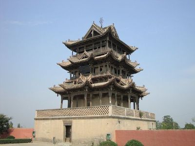 秋风楼位居最后,建于高台之上,楼身三层,高33米余,面宽、进深各五间,楼顶为十字歇山顶。楼内设有金柱12根,直通楼顶。秋风楼辉宏典雅,挺拔秀美,为中国楼阁建筑中的佳作,以存有元刻汉武帝《秋风辞》碑而著名。