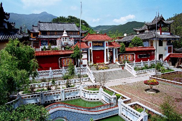 杨公祠后边是玉帝,如来、八方仙佛井然排列的大雄宝殿;右侧是观音殿。虽然这些殿阁都是两层-宫阙,结构和规模都远胜于杨公祠,并且是由一道道悬空过街亭连接,和前院的回廊曲折相通,结构精美,气势恢宏.....