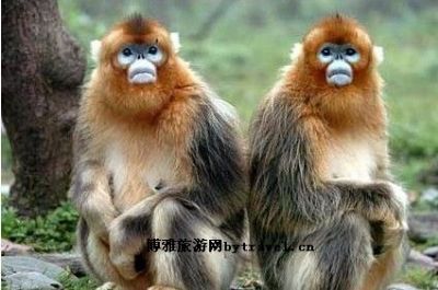 金丝猴,比起其它种类的猴子,长得美丽而奇异。它托着约60厘米的大尾巴,周身披着金黄如丝的长毛,背上最长的毛长达50多厘米,金丝猴由此而得名。它那宝蓝色的面孔和金色的项圈最为醒目。它最大的特点,就是在那宝蓝色的面孔上长着一副朝天的鼻孔,因而有人称它为“仰鼻猴”或“狮子鼻猴”。