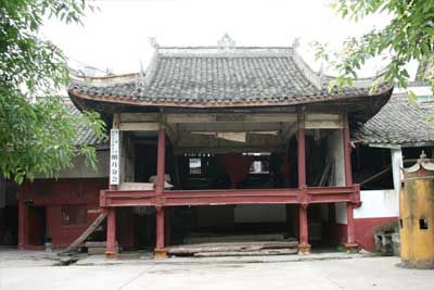 戏楼:木结构单檐歇山式屋顶,穿逗式梁架,七架梁前后双、单步梁用七柱,面阔22.3米,进深9.5米,通高8.2米,檐高5.8米,老檐柱高6.3米,柱径0.31米,素面台基高0.4米。