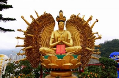 以供奉一万三千多尊大小佛像而得名,驰名海外。此寺供奉的月溪法师肉身漆像,是香港仅有的一座。万佛寺位于沙田火车站附近的一山岗上。须攀登四百多级台阶,才能到达。全程需时约25分钟。到达万佛寺的前院后,可见到院內摆放许多彩色的大型佛像和动物塑像。在主殿对面有一座九层高的万佛宝塔,沿塔內的螺旋形楼梯向上走,从各层的小窗往外望,沙田远近景色便会尽入眼帘,頗有居高临下之势。主殿內供奉一万三千多尊高度相若而形态各异的佛像。主殿入口的门柱上挂有对联,字体优美,寓意深长。寺內还有玉皇殿、准提殿、弥陀殿、万佛宝塔及十八罗汉塑像等。