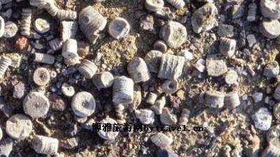 远古留下来的石钱,薄薄的石片,圆圆的外轮,中间有个圆孔或方孔,如果不是三质的,人们会将它误认成在古钱币。这石钱,丰满了大片戈壁滩,如天上的星星数也数不清。1913年,英国探险家斯坦因历尽艰险来到这里,为俯首即拾的石钱-海百合茎化石惊叹不已,他把这一重大发现披露于世,并将此地命名为石钱滩。