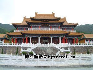 寺右侧山腰建有南天坛,完全按北京天坛祈年殿建筑的大小建造,三层,屋檐层层收缩,作伞状。殿高32米,底部直径24.2米,巍然屹立于60米高的汉白玉圆台上。附近还有隐士阁、月老阁等景点。