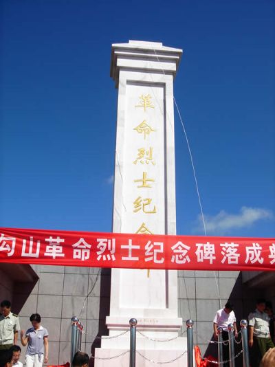 2006年1月,勾山烈士纪念碑破土动工,经过半年的努力,克服了施工中的种种困难,于7月中旬正式完工。现以形成勾山革命烈士纪念碑、革命烈士史迹陈列室、休闲广场三大主体建筑群。设计集爱国主义和旅游、休闲为一体,占地面积1000平方米,投资70万元,纪念碑高11.8米,陈列室建筑面积为100平方米。陈列室内共展出23位在抗日战争和解放战争事业牺牲的烈士的事迹及图片资料。为了全面、准确、生动地展现烈士们的光辉历史,街道先后五次派出精兵强将前往江苏省高邮市等地搜集烈士的珍贵资料及图片。同时,集中精力,加大力度解决烈士名录多、时间跨度大、文字记录模糊等问题,真实记录革命烈士光辉英勇的历史。在纪念碑落成典礼上,我们还专程前往江苏省高邮市邀请到周山烈士的家属及周山乡的客人来参加落成典礼。特别是勾山籍烈士周山的女儿高山在典礼上发表了讲话,激励青少年不忘历史,奋发向上。